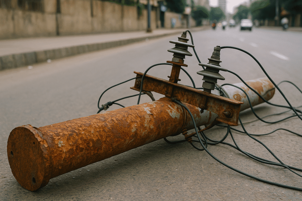 Shahrah-e-Faisal par Saddar ki taraf ja rahi motorbike par zang alooda bijli ka khamba gir gaya. Motorbike sawar khandan hadse ka shikar ho gaya. Shohar mouqa par hi ja bahq, jabke bivi aur 17 saala beti shadeed zakmi ho gayi, jinhein hospital muntqil kar diya gaya.